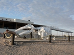 Late in the afternoon, we left the main road for some whale watching in Laguna Ojo de Liebre (6 miles south, 18 miles west from Guererro Negro) where gray whales from Alaska come to spend the winter season. Already from the shore one could tell that the lagoon was full of happy whales: their fountains were popping up all over the place. Unfortunately, we were told that the whales do not accept visitors after 4PM (the last boat leaves at 4 o'clock) and that we'd have to come back next day at 8AM. Yet, we were very welcome to camp for free on the beach till the next morning. Windy and rocky beach, without one human soul or a can of cold beer within a 20-mile radius.. So we skipped the offer and continued south.